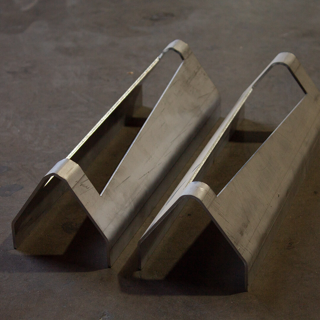 Plegamos planchas de metal desde 06mm. a 12mm. de espesor en acero al carbono para esto contamos con un conjunto de herramientas que nos permiten deformar la plancha en diferentes ángulos.